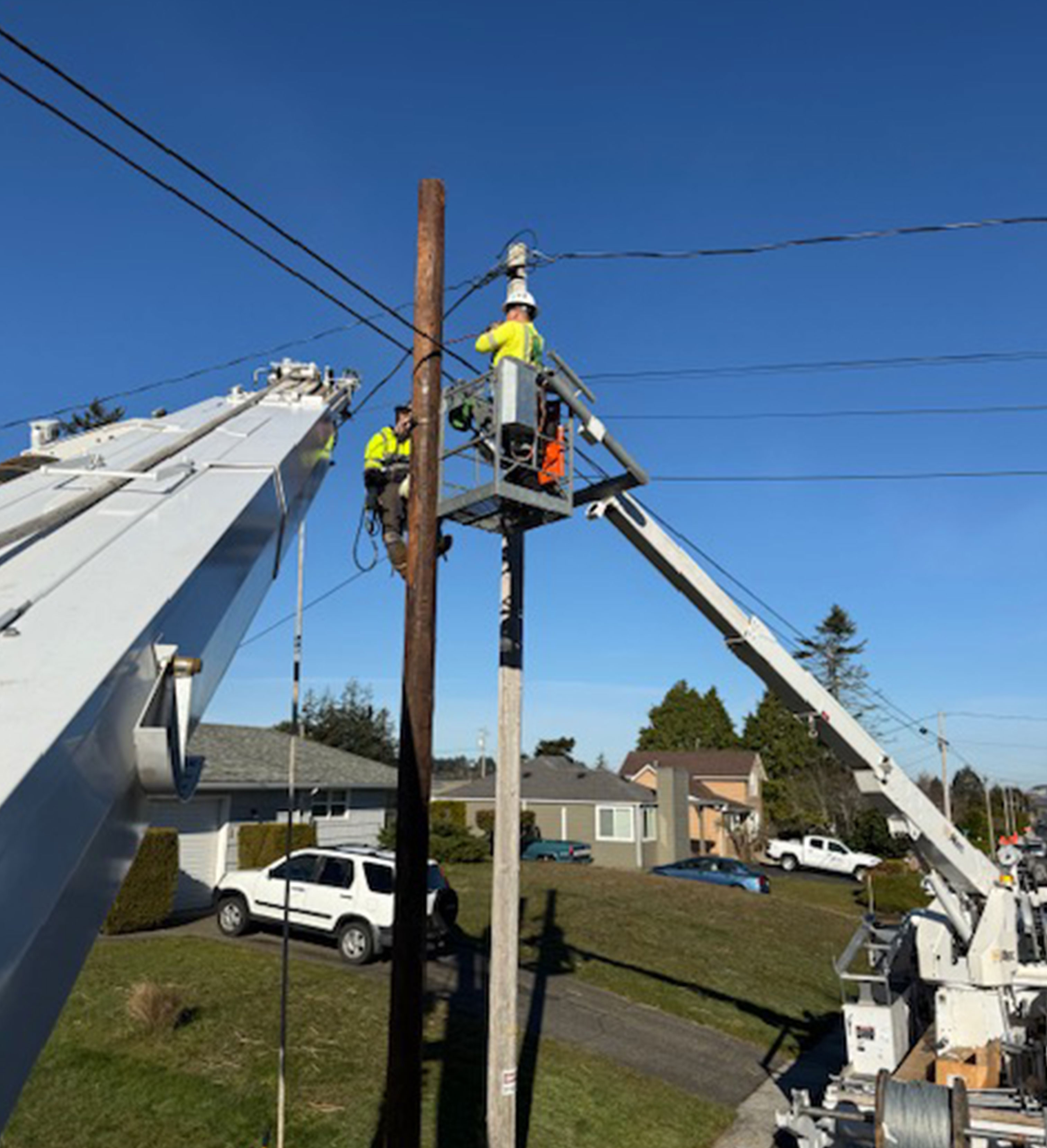 Whether supporting large-scale network builds or targeted installations, Oregon Brothers Construction brings dependable workmanship and aerial capability to every job. We work closely with utility providers, contractors, and municipalities to ensure installations meet project specs and long-term performance expectations.